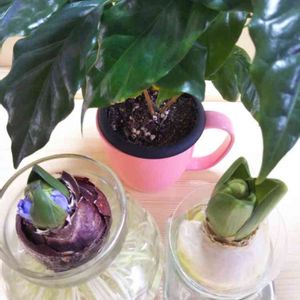 水栽培のヒアシンス、葉っぱが伸びてきました🌱🌱