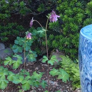 西洋オダマキ ローズバローが咲いてます‼️ 種ができたのに、また咲くの? 寄せ植えをロックガーデン前に移動したら、 また八重咲きで、満開になりました❣️💕 オダマキって一年に何回も咲くんだっけ⁉️ テクマヤマヤコンテクマヤマヤコン⁉️⁉️
