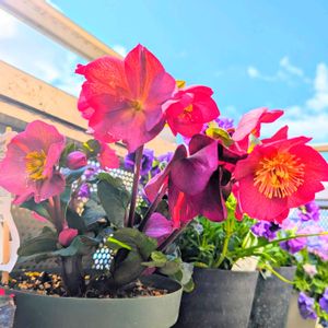 ①紫色が美しいパンジー、 ② 3月に投稿しそびれた クリスマスローズ氷の薔薇 Italiano Carlotta ③ 2年前にお迎えしたときの ②と同じ氷の薔薇 花の色が変化してます