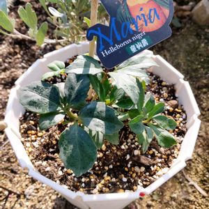 クリスマスローズ アーリーローズ だいぶ成長してきました。花は2個あるみたいです。良かった❣️一個は寂しいから心配してました😆