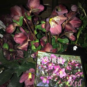 クリスマスローズ 氷の薔薇 レッド 地元のクリスマスローズ展で現物を見て、その赤さとシックな葉色にキューン😍✨ 5号鉢とは思えない花付きです🌼🌼 来年うまく咲かせられるかな😓