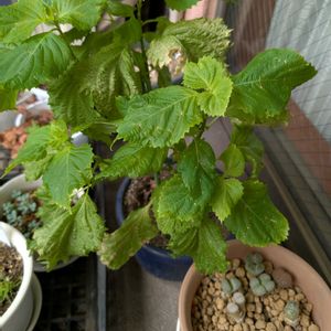シソ🌿 毎年夏には花友さんから頂いたシソの苗が重宝します👍️ だけど、今年も暑すぎて…葉焼けでほとんど食べられず😭 たまにてっぺんの若葉だけ摘んで頂きました😓 リトープスも次々と溶けて残り少ないよ〜😭 今朝の空 昨日は雲の中に隠れながら飛んでたけど、今日は雲のほうが高くて飛行機がくっきり見えるよ〜✈ 1日曇り空かな? 昨日が30℃で涼しかったから、今日は気温上がって35℃予想😣暑いって😵💦 2025.8.2