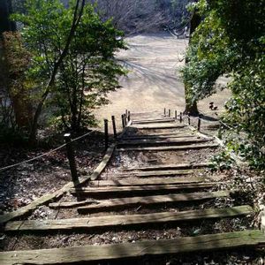 渓谷を渡り、向こう岸へ。 階段がつらいお年頃。 子は軽やかに登っていきました。