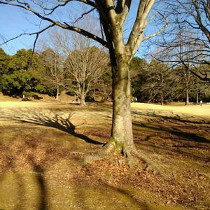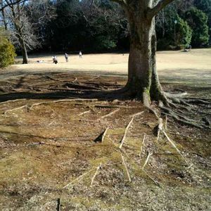 ケヤキの影が、ナスカの地上絵を思い起こさせます。