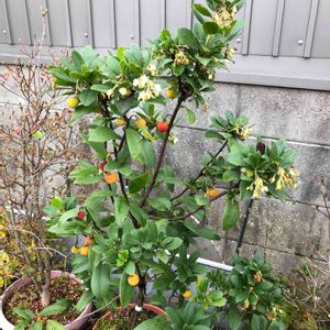 こんにちは☘️ 塀の側に植えたいちごの木(ストロベリーツリー)が色づき始めています。 ツツジ科の植物との事ですが、食べても味もないらしく、未だに食べたことはありません。白いお花は、すずらんみたいに可愛い😸💕🎶 寒さが苦手な私は、あまり長くお花のお世話ができません😿 寒いですが、今週も半分になりました。穏やかな時間をお過ごし頂けますように🙇🏻♀️🙏
