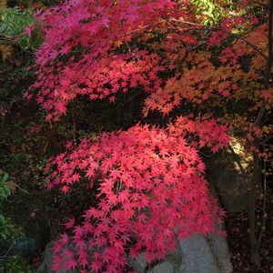 おはようございます😊 いつもありがとうございます♡ 丹波市のお寺にて 紅葉のグラデーションが綺麗でした🍁 真っ赤な天目カエデ🍁 灯籠の屋根にたっぷりの苔😍 2024.11.22 📷️