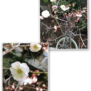 お庭の鉢植えの梅が やっと咲きました!