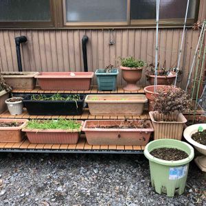 せま〜いお庭で、プランターの置き場所が無いので、棚を作って貰いました! 春になったら、お花咲くので 待ってて下さい。