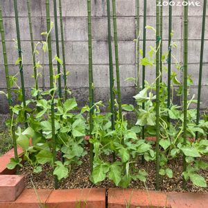 団十郎朝顔さんたち、遅蒔きだったせいか、物凄い勢いで成長しています✨✨ せっかく立てた支柱に、素直に巻く子もいれば、とんでもない方向に地面を這っていく子、最早隣のツルに絡まってこんがらがっている子😵 とりあえず最寄りの支柱に巻いてもらえるよう、誘導はしましたが、、 果たして、、、🤔