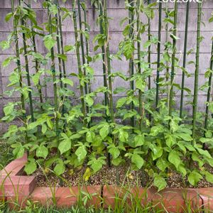 団十郎朝顔さん、ツルが竿の先に到達したものから摘芯しました✨✨ さてさて、上手く咲いてくれるでしょうか⁇