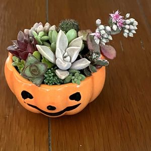 おはようございます😊 今日はハロウィン🍬👻🎃ですね カボチャの後ろの2つは maronchanが編んでくれました😀 とっても綺麗に編んであって可愛いです〜⸜(*ˊᗜˋ*)⸝💓 可愛いシマエナガの鉢に、久しぶりの 寄せ植えを作ってみました〜😋💕 🏷ハロウィン月間🎃