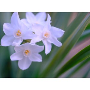 スイセン・ペーパーホワイト(学名: Narcissus botanical paper white 英名: paper white narcissus 和名: 白花水仙、房咲き水仙)の花🌺🤍🌸 ペーパーホワイトは、真っ白で清楚な姿で冬の日を眩しく弾き、恥じらうように沢山咲いている可愛い妖精のような姿の水仙(スイセン)です。 清楚な美しさを持つ真っ白なスイセンをお楽しみください。 真っ白なスイセンは、希望の象徴とされています。🌸🌿🌼🤍🤍