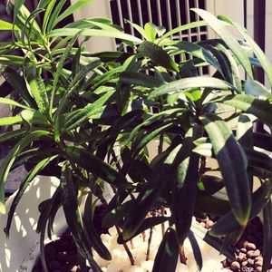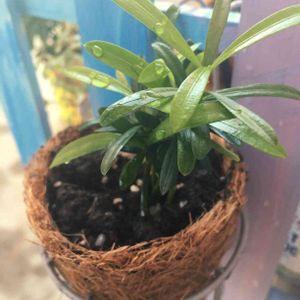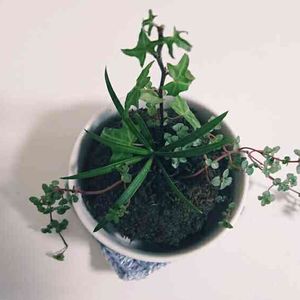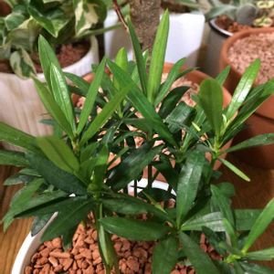 3coinsで買った ラカンマキ 苔に植わってたのをそのまま花器に入れてたのですが (6/3投稿📷) エノキダケみたいな小さな🍄がたくさん💦 3本のうち1本が☆になってしまいました😢 花器なので穴が開いてないのが原因かも… 苔を全部外し根っこを水洗いしてしばらく水に浸けた後、観葉植物用の土で植えました。 鉢はダイソーです😊 残り2本 がんばれー