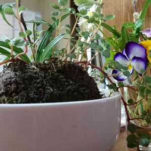 100均の苔玉に100均の観葉植物。ちゃんと根付くか?