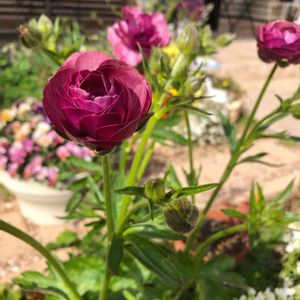 こんにちは〜 本日2枚目の投稿picは、 綾園芸さんのラナンキュラス ラックス ‘’ティーバ‘’。 昨年は、3月25日、3月29日、4月15日に載せています。(昨年の投稿は、写真の中のタグから見れます) 今年で3年目かな?冬越しした株は茎が太くてしっかりしています(*ơᴗơ)🌸 今年も美しい花を咲かせてくれてありがとう😍 ワイン色の花がシックで素敵ですよね(∩´∀`∩)💕 ☆今日の1枚目の投稿にPWさんのマーガレット ストロベリーホイップを載せています。良かったら見てみて下さいね💕︎