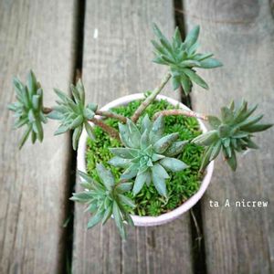 ★ミステリー 本日も大好きな謎肉を😆 名前にもミステリーって入ってるので まさに謎肉!笑 メディテレーニアンなんて 小難しい名前のついたグラプトセダムです♪ Mediterranean自体 地中海周辺の地方名なので 翻訳すると「地中海の謎」かな?😁 見た目で判断できる唯一の特徴は、 茎が木質化しやすいので木立姿になりやすく、 大きさこそ違いますが、 雰囲気は小松緑みたいな感じになります✨ 紅葉はあまりせず、薄黄色の花を咲かせるようです🎶 グラプトセダムのくせに交配親とか 詳しい情報が全然見当たらない困った子です😅 -∴-∵-∴-∵-∴-∵-∴-∵-∴-∵-∴- xGraptosedum 'Mediterranean Mystery' グラプトセダム メディテレーニアン ミステリー 和名 不明(情報募集中♪)