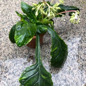 緑花イワタバコの斑入りも開花です。