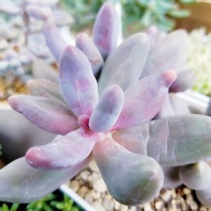 6日、ムッチリぷくぷくの日参加します😁 これも新入りさん 🍂キャンディグレープ パキセダム属 別名 🍂ガンゾウとも呼ばれる多肉 薄紫の太い棍棒型の葉が不規則に出るセダムハイブリッド系 葉挿しのやりがいがある太めの葉 紫麗殿のような色なのに、紅葉するとオレンジ色🍁なんだって😁 まだまだ知らない多肉出てきます