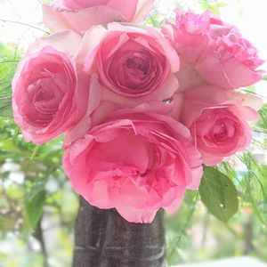 お外は雨なので、ロンサールをカットして、自作花瓶に生けてみました🌹