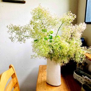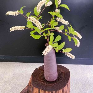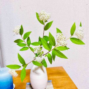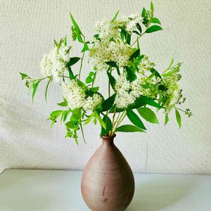 白のシモツケ シンプルな焼き締めの花瓶に…