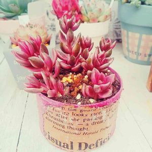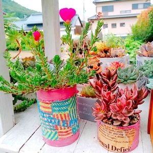 昨日狩った チョコレート錦~❣ 出来たてホヤホヤのリメ缶にin(*∩ω∩) っても 失敗作で…💦 本当はカッコイイ赤色にしたくて 赤と黒で2度塗りしたのに ザラザラにしようと石灰混ぜたら ピンクになった~😭😭😭 なので ピンクに縫っちゃいました😜 しかも ニスが泡吹いてた~...(lll-ω-)チーン ってことで 自分用になりました😭 まだまだ便しなくては…(っω<`。) でも チョコレート錦がinして 可愛くなったから 自己満足で いっちゃいます(ノ∀≦。)ノぷぷ-ッ