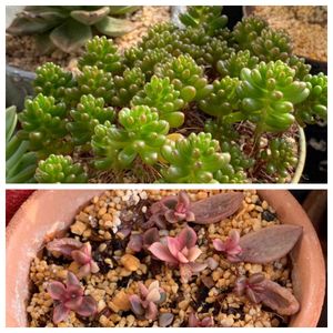 先日、我が家周辺を羽ばたいてる鳥達の被害に遭い大事にしていたチョコレート錦の苗をイタズラされて無くなってしまいました。😭 久しぶりに大激怒‼️😤 自宅周辺を隈なく探した物の見つからず、近くに落ちていた葉を拾い葉押しを試みるも一つだけ芽吹いているものの他は全滅😭 あまりの悔しさにネットでポチッとしたのですが、今日届いたらちょっとお姿が違うような。。 チョコレート錦にしては色白だし、激可愛💕 もし、違っていてもこれはこれで可愛いから嬉しいわ💕 だけど、チョコレート錦。。😭 又出会えますように‼️