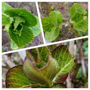 紫陽花の新芽🌱 皆少しずつ違うのね🌱✨ 花が咲くのが楽しみ💠💠💠⤴️
