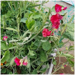 色んな花苗の中から スイトピーが咲き出しました🎶 赤いスイトピー🎼.•*¨*•.•*¨*•.¸¸🎶