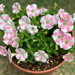 ペチュニア: サフィニア アート ももいろハート様 もも色ハートは花弁にピンクのハート模様が入る品種です。 めちゃくちゃ可愛いです😍 温度や肥料の管理がうまくできているとハートの形がくっきりと出るようです💓💓💓 このももいろハートは挿し芽から成長しました🥰