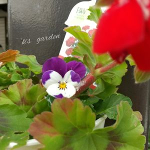 おや?ゼラニウムさんではないですね😆 変なとこから顔出してすんまへん!( >_< ) 種が飛んだのでしょうか😁 ビオラオジサン💜申し訳なさそうなお顔が可愛い😅💜