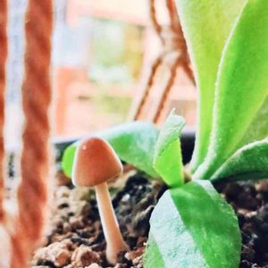 「ひょっこりはん」 コウモリランの鉢を覗いてみたら ひょっこりキノコが生えていました🍄 可愛いけど。。🤣