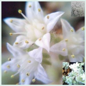モケモケのセダム、カシミアヒントニーのお花です😊💕 撮影中、なんか匂うなァ・・・と思っていたら まさかのこの子の匂いでした💦 こんなに可憐で可愛らしい花なのにクチャい・・・😅