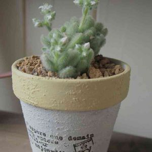 今日も風が強いですね💦 まちゃごろーさんのリメ鉢に子吹き始めたカシミアヒントニーさんをインしました( ´͈ ॢꇴ `͈ॢ)・*♡ モリモリになってくれたら、片面は木のお家の屋根のように、片面は素敵なヘアスタイルになるかしら(❁´ω`❁) まちゃさんのリメ鉢は程よいザラザラで、ずーっと触っていたい触り心地♡まちゃさんありがとう(人´∀`*)