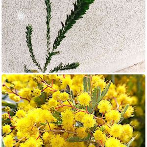 アカシア ブルーブッシュ💚💛 咲き始まりました〜✨💚 まだまだ若い木なのでつぼみがもっと全体に付くといいな〜😄💖 咲き始まったばかりなので、とっても楽しみ〜💕🎶✨