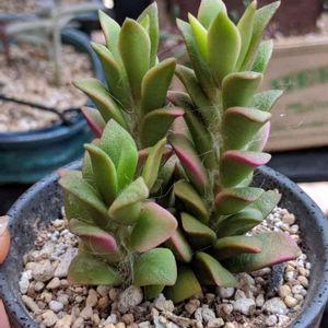 🐟トトの日🐟 やって来ました今月のトト特集~♥ 先月切って挿した分少し大きくなってます🐟💕 もう少し大きく増えると思ってましたが( ˆ꒳ˆ; ) でも元々の切られた親の方は大きくなってるのが分かりますね~😍 青矢印の上の子が隠れて見づらいくらい親は生長してくれてます🐟🐟🐟 まぁ気温も上がったり下がったりだったしまぁまぁかな(*´▽`*) 下の青い鉢のは長い子3本居たのですが、こちらも1本三分割くらいにちょきちょきして挿しちゃいました(笑) 鉢を替えたんですが、ほんと根っこ予想以上に回ってて、根詰まりしやすい子ってのが分かりました🤔✨ この子達の休眠って何を合図に見極めたらいいんだろう?ってのが最近の悩みです😅