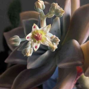 ☆今日の朧月さん(脱葉挿しっ子)☆ 1ヶ月程前に葉挿しで頂いて親葉はカピカピだったので自立させた子です(^^) ベランダで放置のスパルタしてたら外葉これジュレ寸前だったのかな?!なんか透明がかってる…(ㅇㅁㅇ;;) 中心に可愛いピンクで強そうなのが出てきてるから☆になってはいないよぅ…( ;∀;) 朧月さんは今葉挿しから花芽付き個体まで色んな子がいて楽しい😊♪ 全部初めての行程を強い朧月さんで体験させて頂いてて、朧月さんにはほんと感謝だなぁ😊🙏🏻💕
