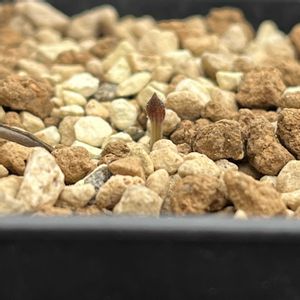 2023年9月播種のドレゲイ。外で夏越しして冬を迎えているという、小ささの割に厳しい環境だからか、成長がすごくゆっくり。