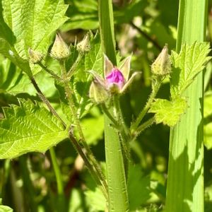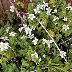 近所の道端のやぶで、ビロードイチゴのお花が咲いていました。 キイチゴの一種です。 お花は直径1.5cmほど。 小さくて可愛らしいです。