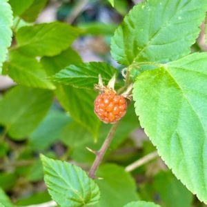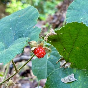 バライチゴの実🍓がなってました。野いちごにしては大きめかな?直径は1.5センチ程。初夏に咲く花も1個だけ残っていました。8/27群馬県