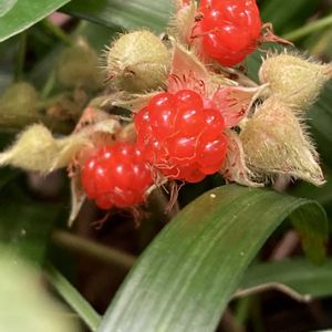 フユイチゴです。 自然大好き派😘です。急に寒くなり、この実も一気に赤く色づいて来ました。まだ、初期なので下には若い実が写っています。 木イチゴの仲間なのでもちろん食べることが出来ます。味はまあ自然のイチゴの味ですが、もちろん市販の🍓のように甘くはありません。 京都・花背の料理旅館"美山荘"のお節料理にもこのフユイチゴが登場します。このフユイチゴにはよく見ると極小さな毛が生えていますがこれを処理して提供されます。う〜ん、こんな小さな毛まで人手をかけて処理するなんて和食の極みですね。 これからこの辺りではこのフユイチゴを沢山見ることが出来ます。
