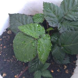 株分けしたブラックベリーの一年目苗。 ツルの先からこんな感じの塊が出て、根まで生えてきたので、イチゴのランナー差しのようにしました。 ソーンフリー種なので扱いやすい。 本体はもうお疲れのようで、二株採ったら、更新しようと思う。