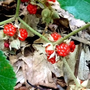 家の近くの山道で沢山のフユイチゴの実を見つけました😊 透明感のある赤い実が可愛いです✨