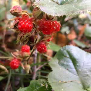 ラズベリー(バラ科)って、木苺ですよね 花より男子じゃなく、団子🍡もいいなぁ〜😋 じゃなくて実🍒 もいいなぁ〜 🏷️今日のお花 キイチゴ(お花じゃないけど~)