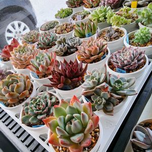 こんにちは👋😃 よし👏 今年の冬の多肉さん達は、吊り下げ作戦で、家に全部入れたいと思います(*´∀`*)ノ 岩手の秋は短いので、もうその事ばかり(家じまい)を考えてしまいます🤭 1️⃣桜牡丹 うっすらピンク🩷 2️⃣マッコス 3️⃣花月夜×チワワエンシスイェコラ 4️⃣春萌 全部好きなランキングにはいりますね❤️ 5️⃣トラディスカンティア これは凄く増えて増えて、何度カット✂してお嫁に出してやったことか(笑)💦大変です😅