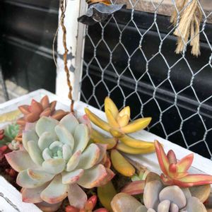 (。・ω・)ノ゙ コンバンハー♪ 多肉植物好きになるきっかけをくれた最初の一鉢「フユビジン」と隣は「バラ講座」😊