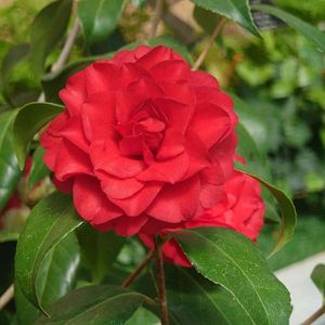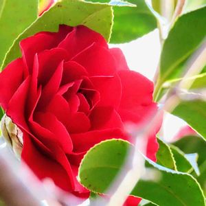 ツバキ(椿) 薩摩紅(サツマクレナイ) 別名 大隈直(オオスミアタイ) 鮮やかな真っ赤、八重咲きの椿です。 実家の庭木で、父の自慢の椿「薩摩紅」。 薔薇と見間違うくらいに咲く姿は、とても存在感があります🌹✨。 鹿児島県垂水市と国分市の民家に原木があるとか。別名の「大隈直」は、古代志布志湾沿岸を根拠地に勢力を振るった隼人の名前に由来するそうです。今の時期、残り少ない花数、奥の方に咲いていたものを撮りました🌹✨📷️。