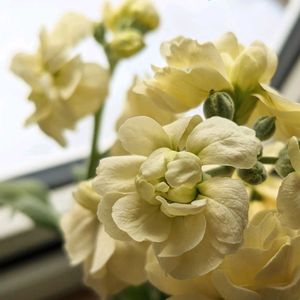 スプレーストック💛 クリームイエローのお花が春っぽい 今年は今のところ雪が少なくて春が近そう🎶そうは言ってもまだ1月…まだまだ油断禁物ですが、春が早いといいな😆