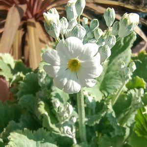 🍀おはようございます🍀 プリムラ マラコイデス ホワイト🤍 やっと1輪開花しました🤍 鉢から出して地植えにした スプレーストック🤍 防寒対策で夕方にはビニールを 被せています かなりの寒さが続いています 庭もあちこちに防寒対策しています😊 チューリップ🌷の芽🌱たちが やっと出かかってきたから 土を少しかけて その上を不織布で囲みました 可愛らしいひなそう🩵 アナタも外で頑張ってね😊