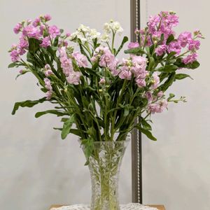 🍀おはようございます🍀 オステオスペルマムは好きで 赤や黄色の挿し木苗など 数鉢あるのですが 新しくお迎えしたオステオさん♡ アキラ ホワイトパープルアイ🤍💜 裏側はうっすらと淡い藤色… スプレーストックはいくつか 枝を切りましたが、 まだ次々に咲いてくれて♫