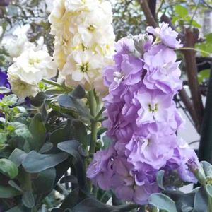 今、外で元気に咲いてくれているのはガーデンシクラメン、バンジーとこちらのスプレーストックだけ🌼 水仙、チューリップ、スノーフレーク、ムスカリ、シラー、イキシア等の球根たちはごそごそ顔を見せてきつつあります✨